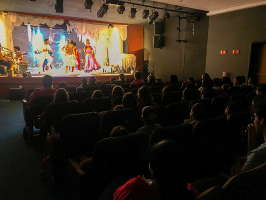 Luzes, cores e performances chamaram a atenção de alunos das escolas municipais Pequeno Jornaleiro e Lídia Leitão de Albernaz durante a apresentação do musical infantil “Ombela – a origem das chuvas”, na tarde da última quinta-feira (7), no Teatro do Sesi Campos. A iniciativa da entidade e a Prefeitura de Campos, através da coordenação de Língua Portuguesa, da secretaria de Educação, Cultura e Esporte (Smece), é uma oportunidade de levar alguns jovens pela primeira vez a uma experiência cênica.