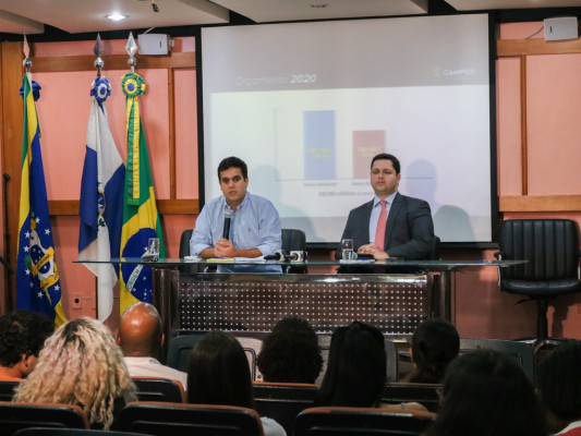 O prefeito Rafael Diniz apresentou detalhadamente os projetos de lei enviados à Câmara Municipal de Campos em coletiva de imprensa na sede da Prefeitura de Campos, nesta segunda-feira (16). Ao lado do procurador geral do município, José Paes Neto, ele também detalhou o orçamento da cidade e a crise financeira gerada, principalmente, pela bruta queda dos royalties do petróleo.