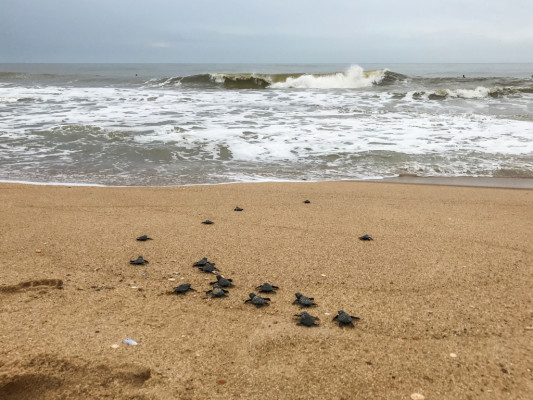 Conscientização: soltura de tartarugas e mutirão de limpeza da praia em Farol