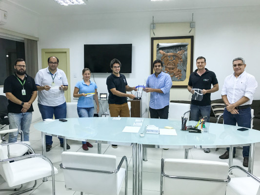 Uma das Startups do “Programa Municipal de Apoio a Startups” doou nesta sexta-feira (27) o primeiro lote da produção de máscaras de proteção, impressas em 3D, para a utilização dos profissionais de saúde que atuam em Campos. O material foi recebido pelo prefeito Rafael Diniz. Conhecida como escudo de face (“faceshield”) as máscaras são produzidas pela startup Sprint 3D, que desde quinta-feira (26) atua, de forma voluntária, para doar toda a produção ao município. As máscaras serão utilizadas por profissionais de saúde para prevenção aos riscos de contágio no tratamento de pacientes com a Covid-19. A iniciativa tem apoio do Instituto Federal Fluminense (IFF) que está doando todo o material necessário à produção das peças.