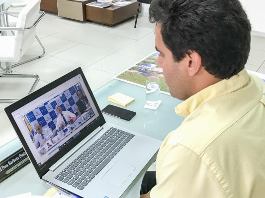 O prefeito Rafael Diniz participou na tarde desta segunda-feira (30), do gabinete da Prefeitura, de reunião com o governador do Rio, Wilson Witzel, por videoconferência. Em pauta, o hospital de campanha anunciado pela Secretaria Estadual de Saúde a ser instalado em Campos, para atender pacientes com a Covid-19. Prefeitos do Norte e Noroeste Fluminense também participaram da videoconferência.