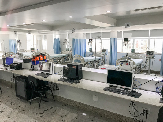 A unidade conta com recepção para identificação de sintomas e higienização das mãos, três andares de internação e uma UTI dedicada ao tratamento da Covid-19