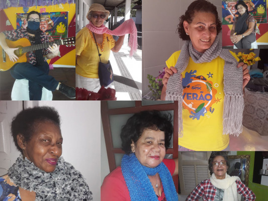 "Eles não esquecem momento nenhum de nós". Esta foi a frase mais dita pelos idosos durante a entrega de cachecóis confeccionados por uma artesã, exclusivamente, para doação a alguns dos milhares de assistidos pela Secretaria Municipal do Envelhecimento Saudável e Ativo (Sesa). Nadir Genásio de Souza tem o hábito de fazer peças de crochê para bebês e doar. Este ano, optou em prestigiar "seus companheiros" da terceira idade. O diretor da Cia de Teatro Nós na Fita da Casa de Convivência do Parque Tamandaré, Josué Rodrigues ficou responsável pela entrega do material.