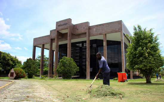 Começa a limpeza dos jardins do Teatro Municipal Trianon