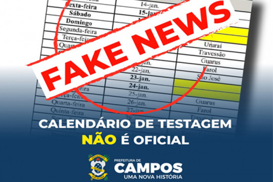 Não acredite em Fake News acompanhe os canais oficiais da Prefeitura