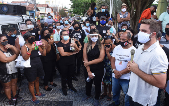 Prefeito Wladimir Garotinho conversa com servidores em frente à prefeitura