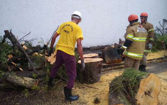 Defesa Civil e Bombeiros retiram árvore e desobstruem pista no Centro