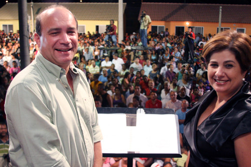 A faxineira Marcela Tavares de Oliveira, de 29, ganhou uma casa do Morar Feliz na Tapera, onde agora vive com dois filhos e dois irmãos. Na noite desta terça-feira (08), ela se emocionou quando viu a Prefeita Rosinha Garotinho entregar as chaves da casa 42, da Rua 1, Quadra B, à doméstica Eva Maria Moço, de 42 anos, que representava todas as mulheres que moravam à margem da BR 101-Campos/Rio.