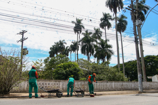 Além da limpeza de bairros e distritos, as equipes realizam manutenção em várias vias do município, a exemplo da Avenida 28 de Março.