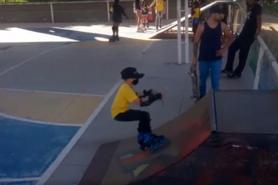 Foram instaladas rampas e obstáculos móveis da nova pista de skate, entregue à tarde