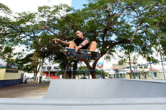 Skatistas em manobras radicais na pista da Praça da República nesta sexta