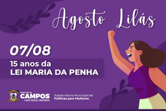 O município de Campos dos Goytacazes comemora, neste sábado, dia 07 de agosto, 15 anos da criação da Lei 11.340/2006, denominada "Lei Maria da Penha". O mês marca, ainda, a campanha "Agosto Lilás", onde se destacam várias ações por todo país, tendo como objetivo a conscientização e a luta pelo fim da violência contra as mulheres. Em Campos, o Agosto Lilás será marcado por vários debates, roda de conversas e encontros, culminando no dia 13 de agosto em uma ação na área central da cidade, promovida pela Subsecretaria Municipal de Políticas para Mulheres, ligada à Secretaria Municipal de Desenvolvimento Humano e Social.