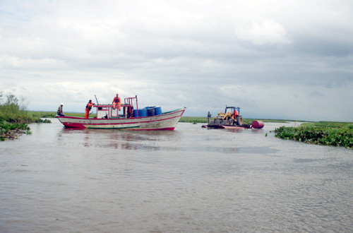 Desobstrução da foz começa a baixar nível do Rio Ururaí