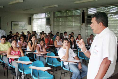 O palestrante e supervisor geral de combate à dengue, Silvio Pinheiro, falou ao novo grupo sobre a biologia do vetor, as medidas de controle e a visita domiciliar. “Hoje (quinta-feira, 24), vamos abordar o reconhecimento geográfico e aplicar exercícios para baixar o volume de depósitos inservíveis. Traremos amostras de larvas para que eles saibam identificá-las nos imóveis visitados e o material que irão utilizar”, explicou Pinheiro.