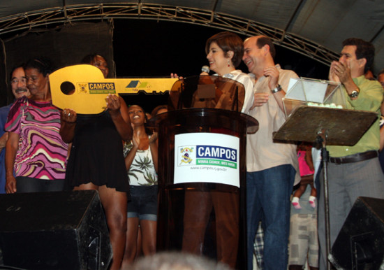 A Prefeita Rosinha Garotinho, acompanhada pelo vice-prefeito Dr. Chicão, acaba de entregar, oficialmente, mais 84 casas do Programa Morar Feliz para famílias que moravam em situação de risco, entre a ferrovia e a Rodovia BR-101, entre a localidade de Tapera e o distrito de Ururaí. Em fevereiro, a prefeita havia entregue 190 casas em um dos conjuntos habitacionais que construiu na Tapera para abrigar também famílias ribeirinhas da comunidade da Ilha, em Ururaí, que há mais de 10 anos sofriam com as cheias do Rio Ururaí.