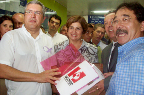 Após a visita, o Ministro perguntou onde poderia ser construído um novo prédio para o Hemocentro e recebeu das mãos do Superintendente da FJBM e da Prefeita um kit com placa comemorativa, material da unidade e mais o projeto de ampliação. “Vou analisar o projeto, mas posso adiantar que é uma obra necessária.” disse Alexandre Padilha.