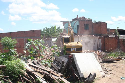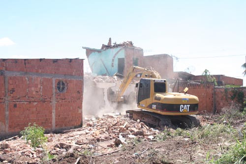 Neste sábado (26) o trabalho de demolição das casas das famílias que vivem em área de risco, no Parque Eldorado, prosseguiu. A Defesa Civil iniciou os trabalhos na última sexta-feira (25). No local, quando chovia, a água atingia até um metro de altura dentro das residências. Na quinta-feira (24), mais 84 famílias receberam suas casas do Programa Morar Feliz, no Conjunto Habitacional da Tapera.
