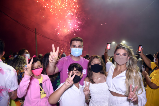 Multidão e o prefeito Wladimir acompanham a queima de fogos da virada do ano