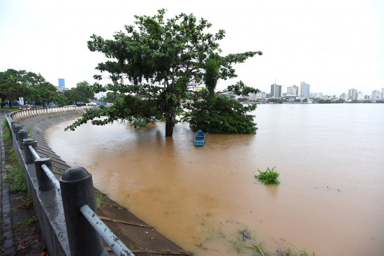 O aumento, que chegou a ser de 10 centímetros por hora durante no último sábado (8), vem sendo estabelecido em cerca de 2 centímetros por hora na manhã desta segunda-feira (10).