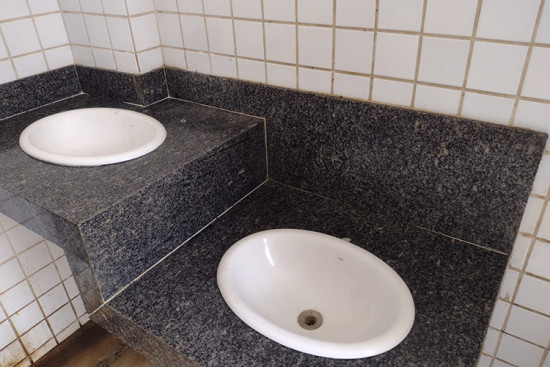 A equipe de setor de manutenção realiza reparos nos banheiros da Praça da Paz, em Goitacazes