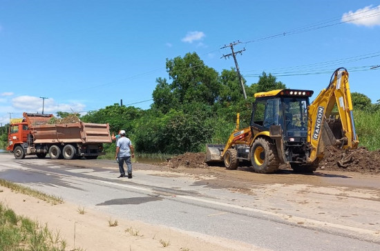 Prefeitura de Campos faz contenção à margem do Paraíba na BR 356
