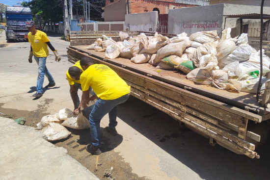 Secretarias removem sacos de areia e promovem limpeza nas ruas do Jardim Carioca