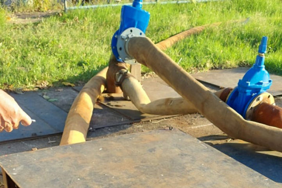 Após os serviços de manutenção das potentes bombas e do quadro de força (energia com rede trifásica) que sofreram danos por vandalismo, o sistema passou a funcionar a plena força de bombeamento