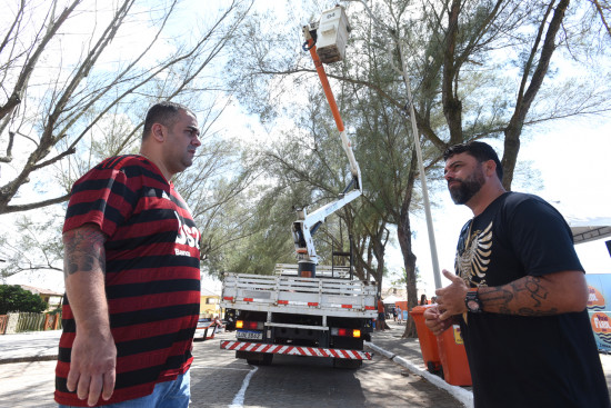 Neste sábado, foram realizadas trocas de lâmpadas e reparos em luminárias de LED na praia campista