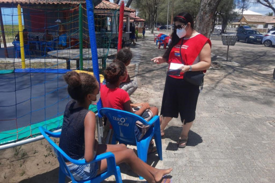 O secretário Rodrigo Carvalho e equipes do PETI distribuíram panfletos, adesivos e colaram cartazes nos quiosques na orla do balneário campista.
