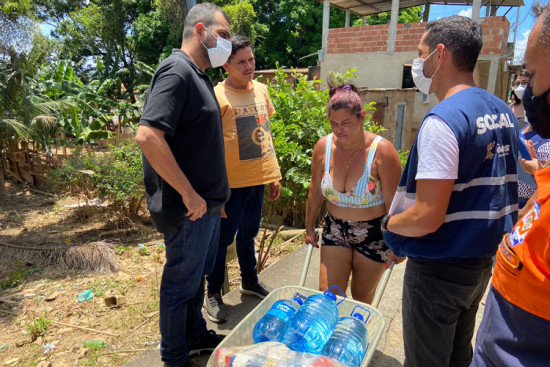 Secretaria entrega cestas básicas e água para moradores com casas alagadas