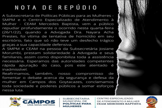Subsecretaria divulga notas de repúdio por crimes de violência contra mulheres