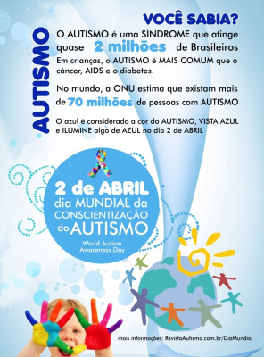 A data de conscientização mundial do autismo foi decretada pela ONU em 2007 para a sensibilização da população mundial sobre a síndrome que, hoje, acomete uma em 110 crianças em diferentes graus e intensidade. O movimento em Campos foi organizado, exclusivamente, por pais de crianças autistas, que contarão com a ajuda da Prefeitura de Campos através de suas secretarias.