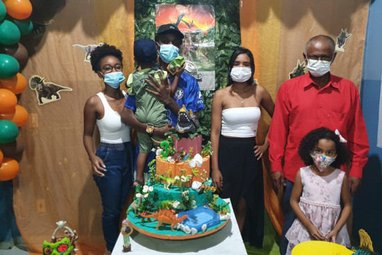 Acolhido ganha festa no tema Dinossauros e família fala sobre emoção