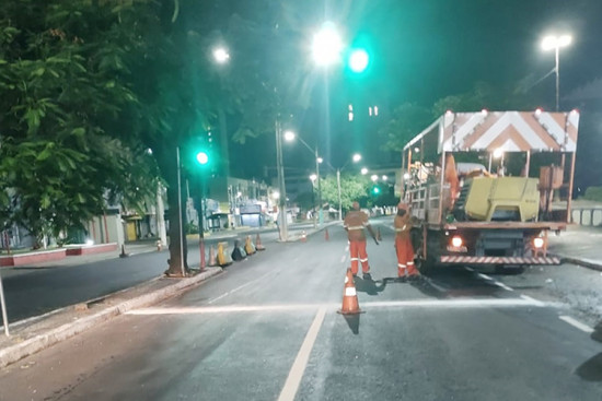 Para evitar transtorno ao trânsito durante o dia, a Prefeitura iniciou nesta madrugada, pintura das faixas da sinalização nas vias do Projeto Norte Sul que integram o Plano de Mobilidade Urbana Sustentável (PlanMobs)