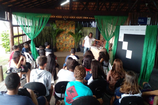 Palestra sobre a descendência indígena campista, ministrada pelo artesão Luís Índio, foi prestigiada por um grupo de alunos da Escola Municipal Farol de São Tomé