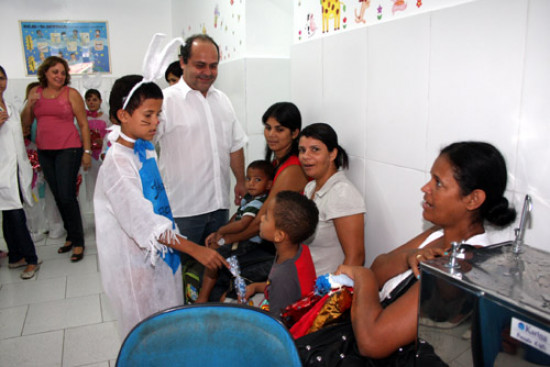 Crianças e adolescentes atendidos no setor de Odontopediatria, no Departamento de Odontologia da Secretaria Municipal de Saúde, participaram nesta quarta-feira (20), de uma festa em comemoração a Páscoa. Vestidos à caráter, de coelhinho da Páscoa, as crianças utilizaram a Educação e Saúde Bucal como tema das canções. Segundo a supervisora do setor, Suzy Pessanha Rangel Batista, cerca de 50 crianças participaram da festa e ganharam uma sacolinha com bombons, escova de dente e informativo com instruções de escovação e outros cuidados.