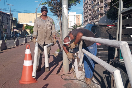 Substituição de tubos amassados no guarda-corpo da Ciclovia Patesko