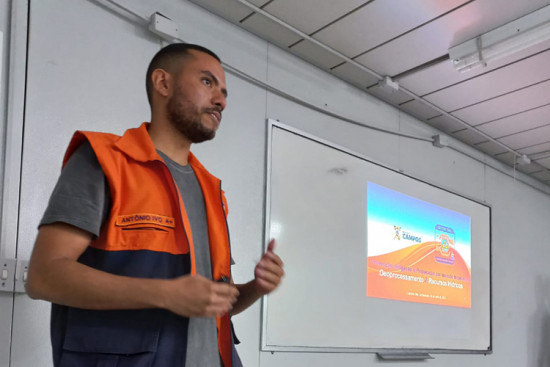 Os coordenadores de Geoprocessamento e Monitoramento do órgão, respectivamente Antônio Ivo Barbosa e Leandro Freitas, fizeram a apresentação de algumas das ações diárias do setor