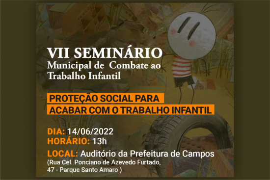 O evento será realizado na próxima terça-feira (14) e o tema será ““Proteção Social para acabar com o Trabalho Infantil”