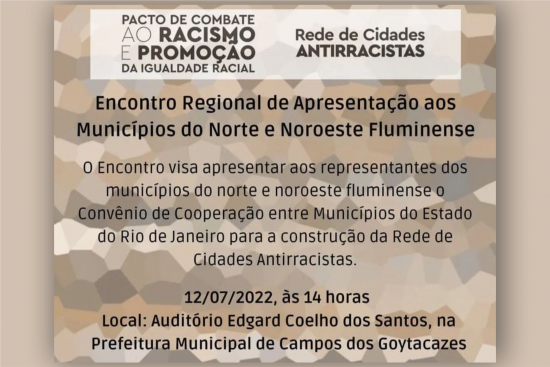 Encontro Regional do Pacto de Combate ao Racismo nesta terça-feira
