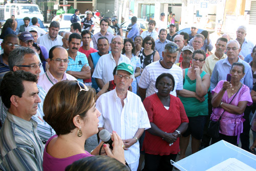 - Antes de ficar por sete meses afastada do cargo, iniciei as conversas com o BMG, que nos prometeu instalar uma agência avançada aqui. As conversas pararam com o meu afastamento mas, assim que retornei, retomamos e hoje estamos aqui lançando essa unidade que vai facilitar a vida de produtores rurais, de servidores públicos que passarão a receber aqui e a toda comunidade que poderá pagar suas contas aqui mesmo. Aqui é uma região promissora e em crescimento - , enfatizou a prefeita.