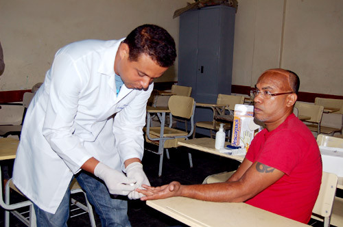 Luis Cláudio dos Santos Pires foi um dos 60 alunos da Educação para Jovens e Alunos (EJA) do Colégio 29 de Maio, no bairro Pecuária, a ser atendido na noite de terça-feira (03) pela equipe do projeto Estação PSE do Programa Saúde na Escola (PSE), da Secretaria Municipal de Saúde. Ele aproveitou para aferir a pressão, glicose, passou pelo atendimento com a dermatologista e, ainda, assistiu as palestras ministradas na noite.