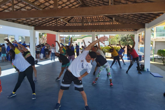 A Fundação Municipal de Esporte aproveitou cada espaço para abrigar hidroginástica, futsal sub 13, basquete 3x3, ballet infantil, futevôlei e roda de capoeira, “aulões” de ritmo, entre outras