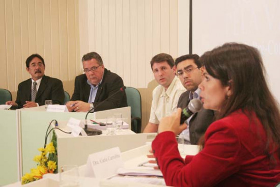 Expositores - A promotora de Justiça, Carla Carruba, falou da importância do papel do promotor e juíz perante os problemas da saúde e citou a importância da capacitação e pactuação, ações que refletem diretamente no processo de judicialização.
