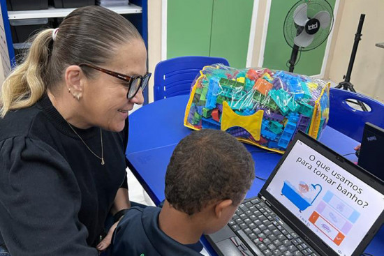 Na E. M Getúlio Vargas, em Tocos, a professora do laboratório de tecnologias digitais adaptou às atividades para atender crianças com necessidades especiais