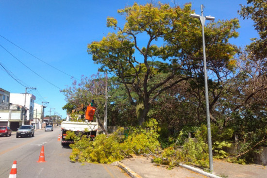 Nesta semana, a equipe de poda realizou a retirada de galhos de árvores que corriam risco de cair na Orla de Guarus