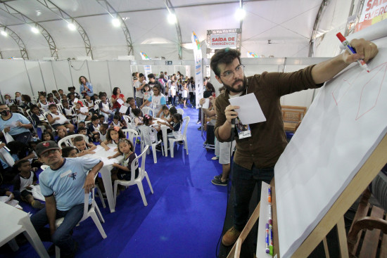 Atividade foi conduzida pelo quadrinista Rapha Pinheiro, editor-chefe do Universo Guará e membro da equipe curadora da “Área Nerd” da Bienal 2022
