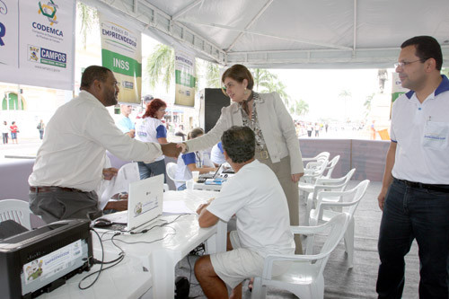 O presidente da Codemca, Jivago Faria, entregou à prefeita, uma camisa do Programa de Incentivo ao Micro e Médio Empreendedor. “O Espaço do Empreendedor vai continuar na Praça São Salvador até esta sexta-feira (3), das 9h às 17h, informando e legalizando quem tem um pequeno negócio, mas atua na informalidade”, informa. Neste primeiro dia, mais de 100 pessoas foram atendidas até o meio-dia.