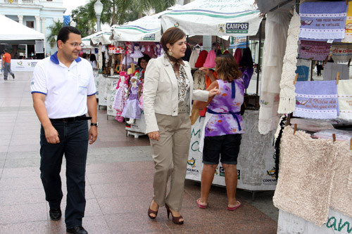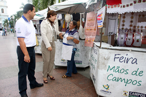 A Prefeita Rosinha Garotinho visitou nesta quinta-feira (2), a Feira Mãos de Campos, na Praça São Salvador. Os 19 anos da feira serão comemorados na próxima terça-feira (7), pela Companhia de Desenvolvimento do Município de Campos (Codemca), em grande estilo, com um bolo de 19 metros, atrações circenses, o projeto Brincadeira de Criança e a entrega de novas barracas.