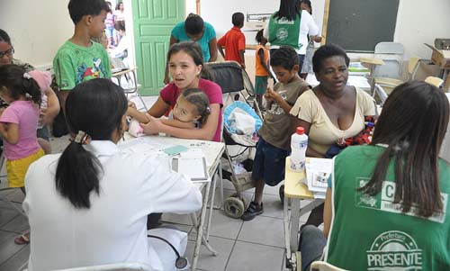 O programa Prefeitura Presente atraiu centenas de pessoas neste sábado (11), na Escola Municipal Frederico Paes Barbosa, no Parque Novo Mundo. O projeto que vem sendo realizado em várias partes do município, sempre favorecendo as famílias carentes, prossegue até as 16h e, entre os serviços oferecidos, destacam-se a assistência jurídica, pediatria, ginecologia e a Biblioteca Volante.